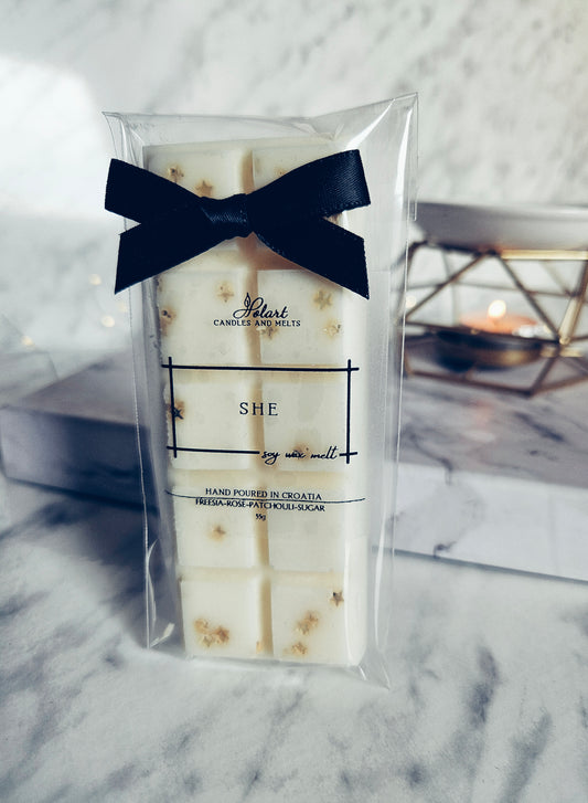 Mirisni voskovi za topljenje na aroma lampama izrađeni od 100% sojinog voska i visokokvalitetnih mirisnih ulja bez parabena. Mirisni voskovi mirisom su intenzivniji od svijeća, a zbog kvalitete mirisnih ulja i sojinog voska, višesatno uživanje u njihovu mirisu je zagarantirano (1 komadić voska traje približno 3 lučice= 12h).