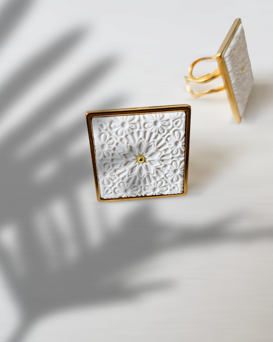 Prstenje podesive veličine od nehrđajućeg čelika s ručno oblikovanim elementima od polimerne gline.