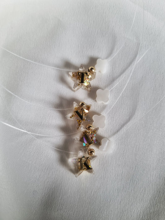 Nevidljive ogrlice dekorirane ručno izrađenim perlicama od smole i glittera, perlicama ispunjenim 14K zlatom, perlicama od školjke te elementima od nehrđajućeg čelika (SS304) i 925 srebra.