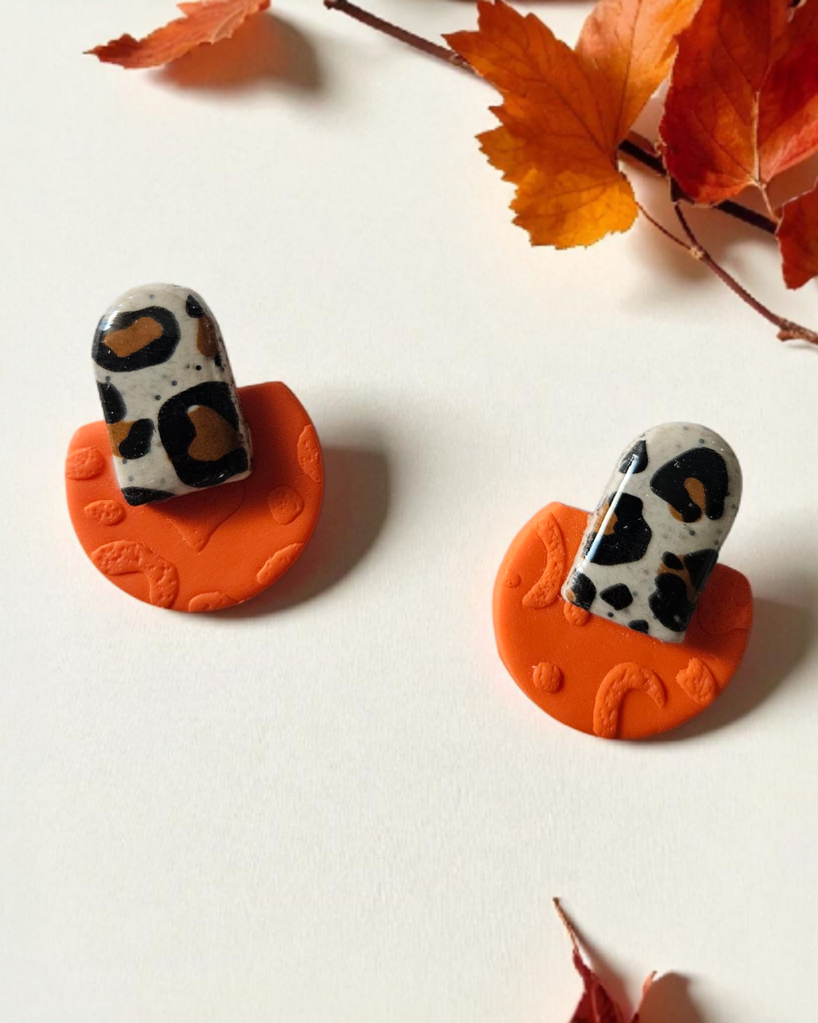 Handmade earrings made of polymer clay and stainless steel elements (pins).