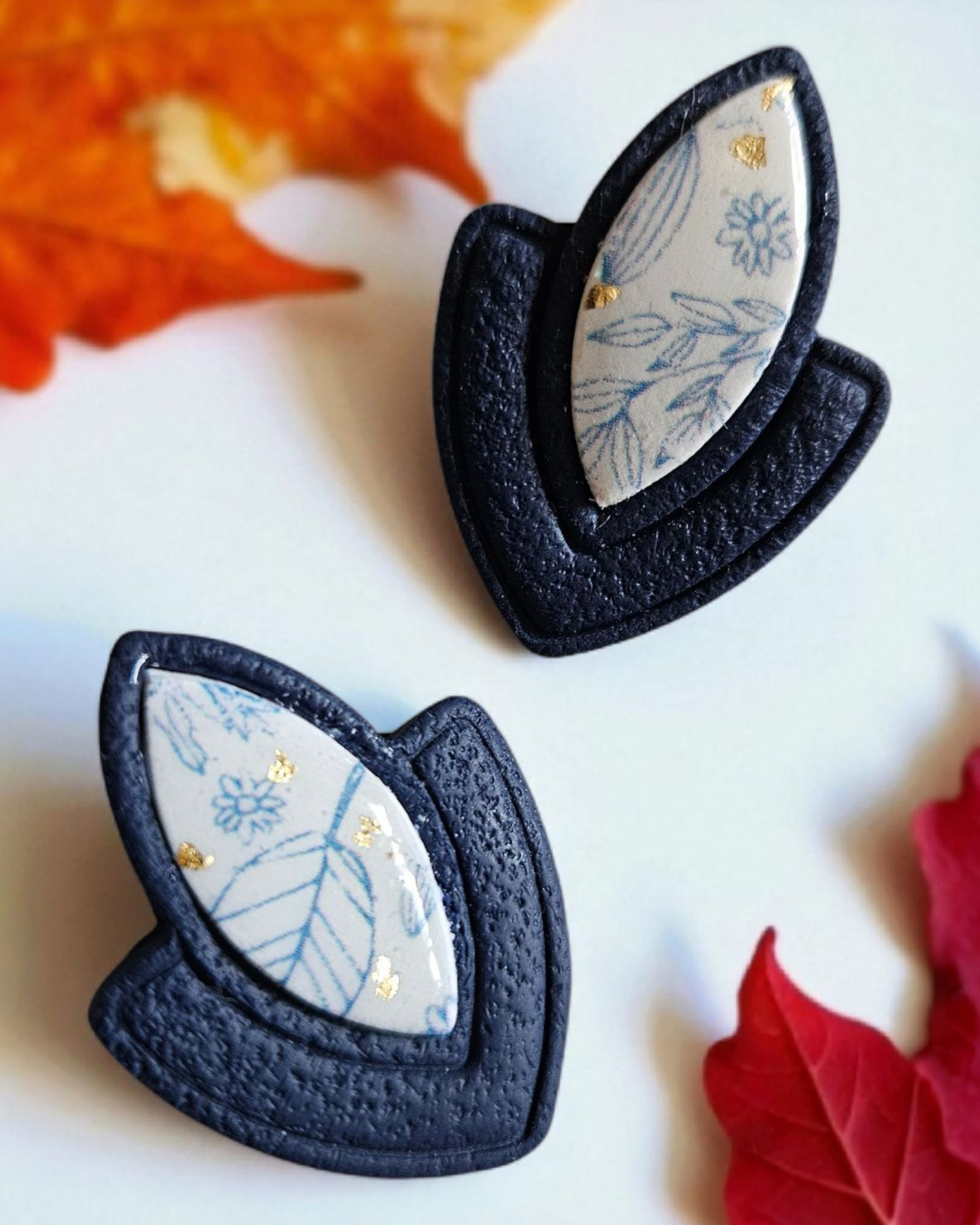 Naušnice izrađene od polimerne gline s elementima od nehrđajućeg čelika.