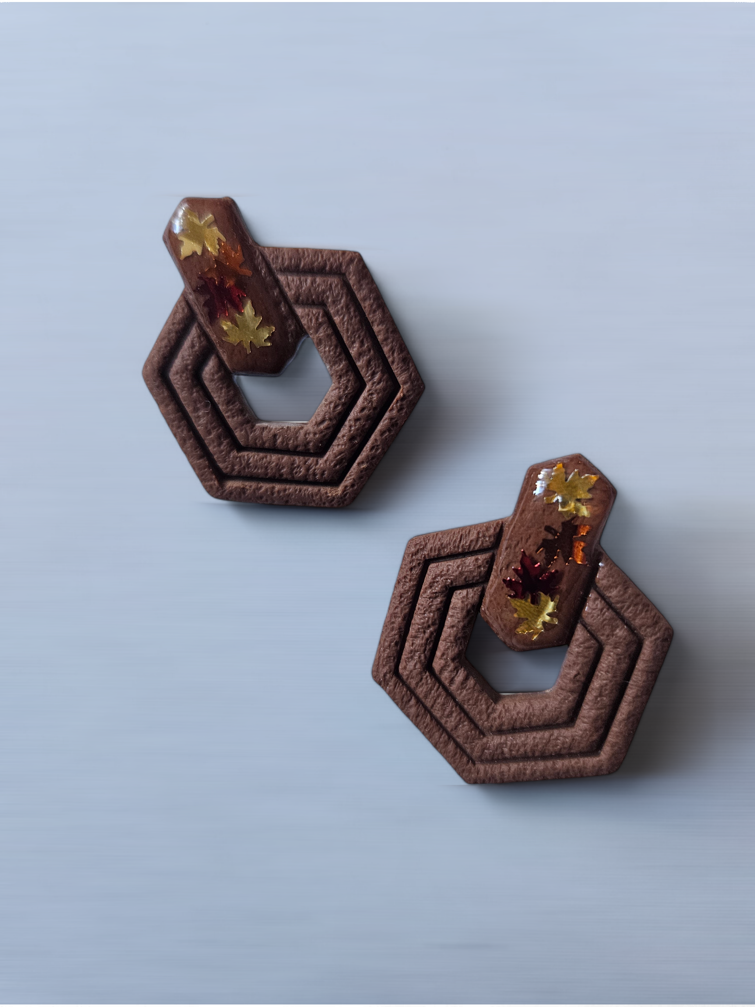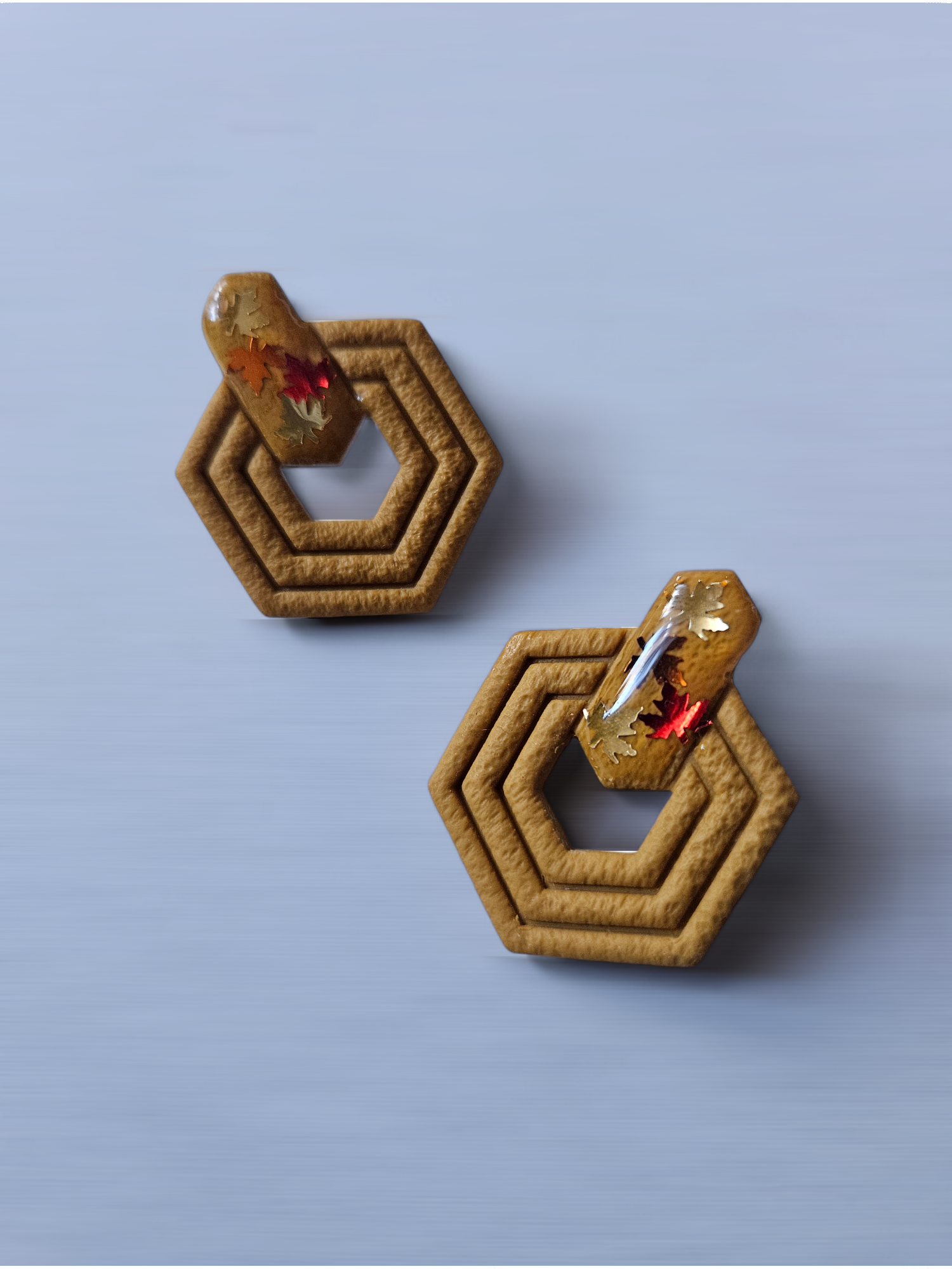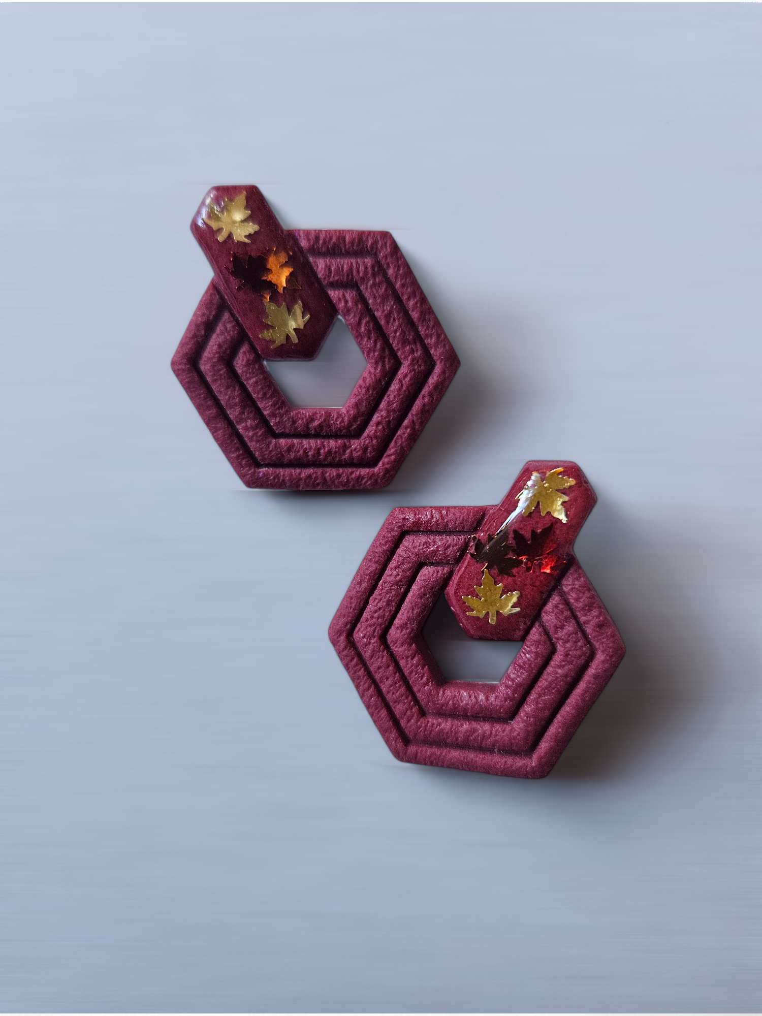 Naušnice izrađene od polimerne gline s elementima od nehrđajućeg čelika.