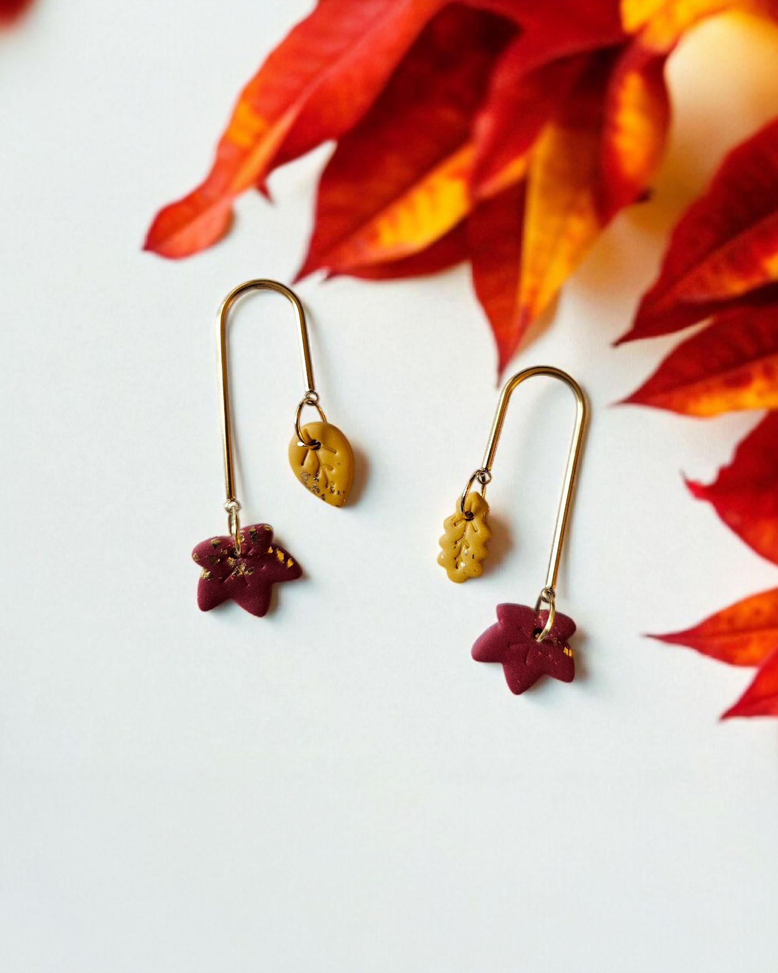 Naušnice od polimerne gline s elementima od nehrđajućeg čelika.