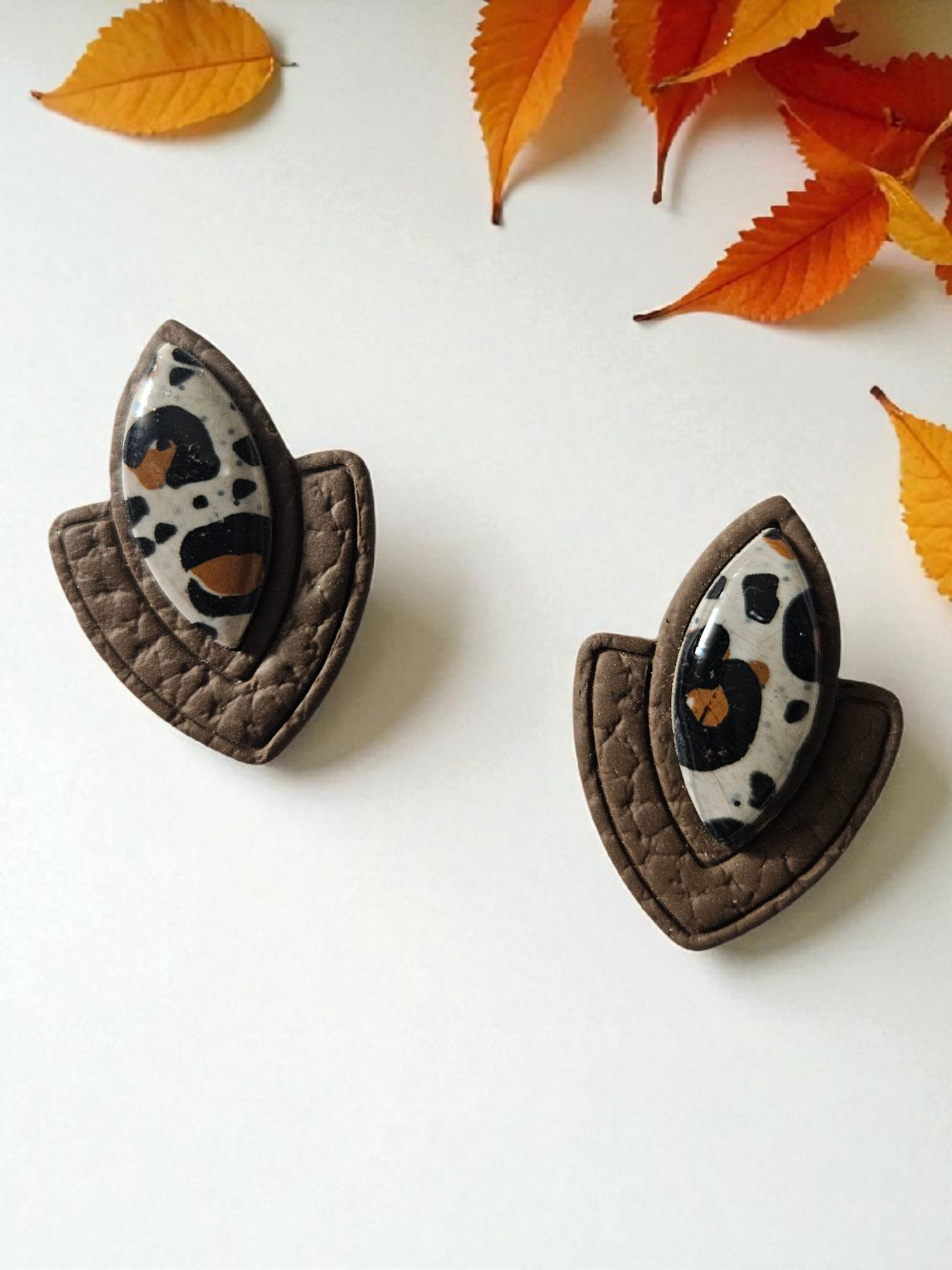 Ručno izrađene naušnice od polimerne gline i elemenata od nehrđajućeg čelika (iglica).