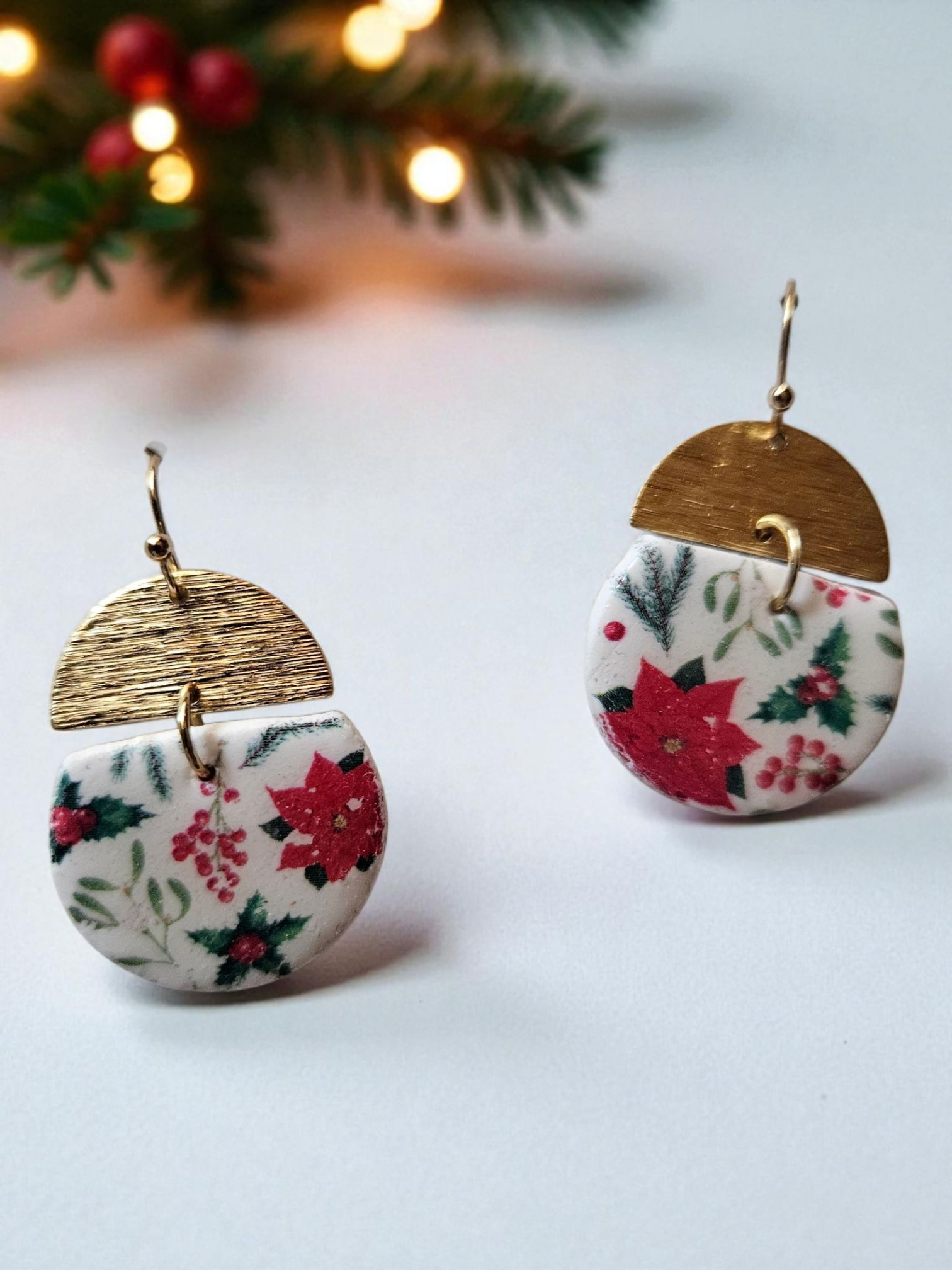 Ručno izrađene naušnice od polimerne gline i elemenata od nehrđajućeg čelika (iglica) + mjedi (viseći dekorativni element).